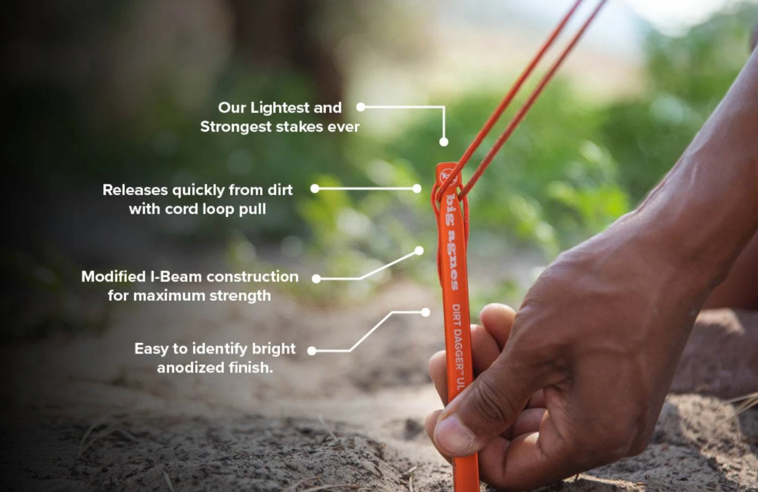These are Big Agnes’ lightest and strongest tent pegs yet, with a 25% increase in strength to weight ratio.