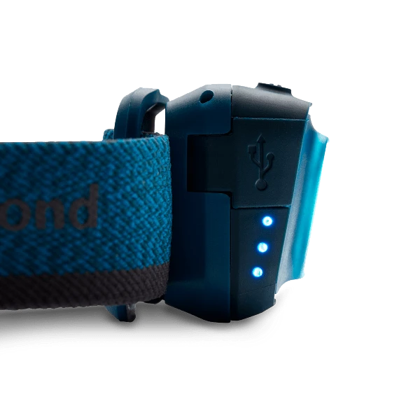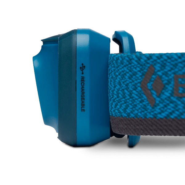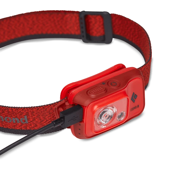 The rechargeable version of Black Diamond’s Cosmo 350, the Cosmo 350 R features 350 lumens of power housed in a super compact, watertight body, making it perfect for evening walks and overnighters in the woods. The Cosmo’s new compact body is more ergonomic with a lower profile for improved balance, and the updated user interface includes a second switch for easy lens selection. Powered by our BD 1500 Li-ion battery that’s charged by a micro USB, the Cosmo 350 R also features a sustainably made elastic headband with recycled textiles. In addition, the updated optical efficiency not only provides brighter light, but also saves battery life. And thanks to its watertight construction, the Cosmo keeps lighting the way whether you’re forced to bike home in the rain, or you’re hiking back to camp in an unexpected downpour.