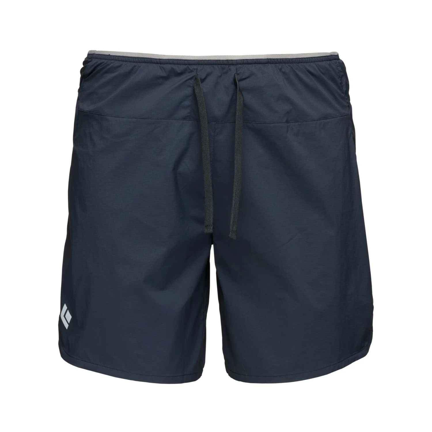 Featuring a stretchy nylon/elastane fabric with a DWR finish, the Distance Run Short holds up to weather and abuse when out in the hills while carrying everything you need for a long day in the mountains. With two side drop-in pockets and two rear drop-in pockets, plus a zippered rear pocket to hold a phone securely, the Distance carries all the essentials. Reflective Black Diamond logos in the front and rear keep you visible in pre-dawn/post-sunset adventures. The Distance Run Short comes with an updated interior brief and is available in 5” and 7” inseam.