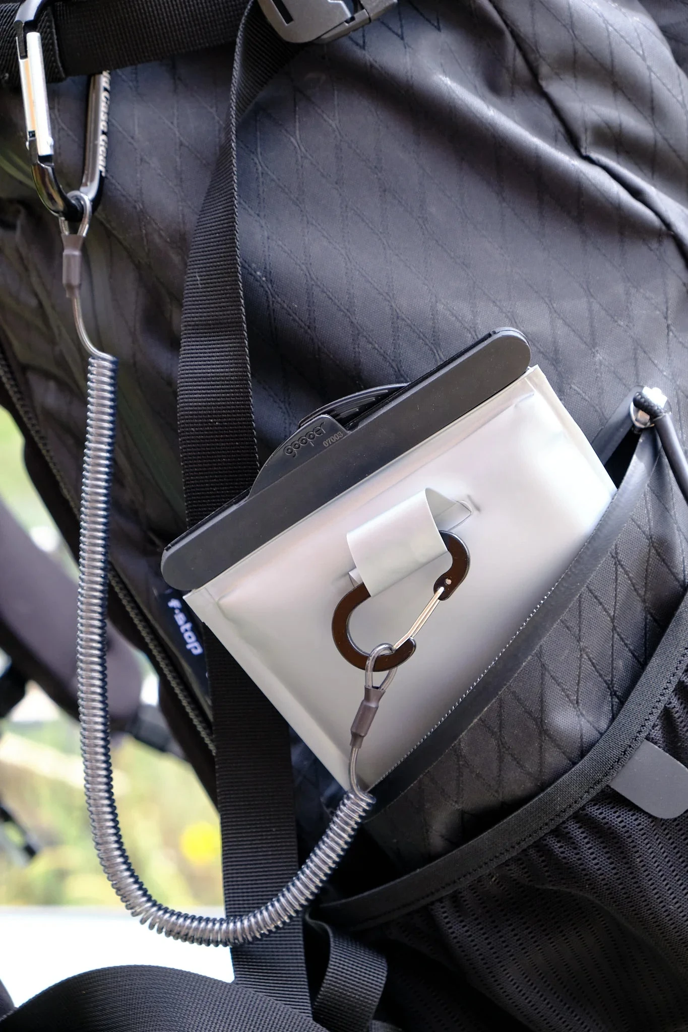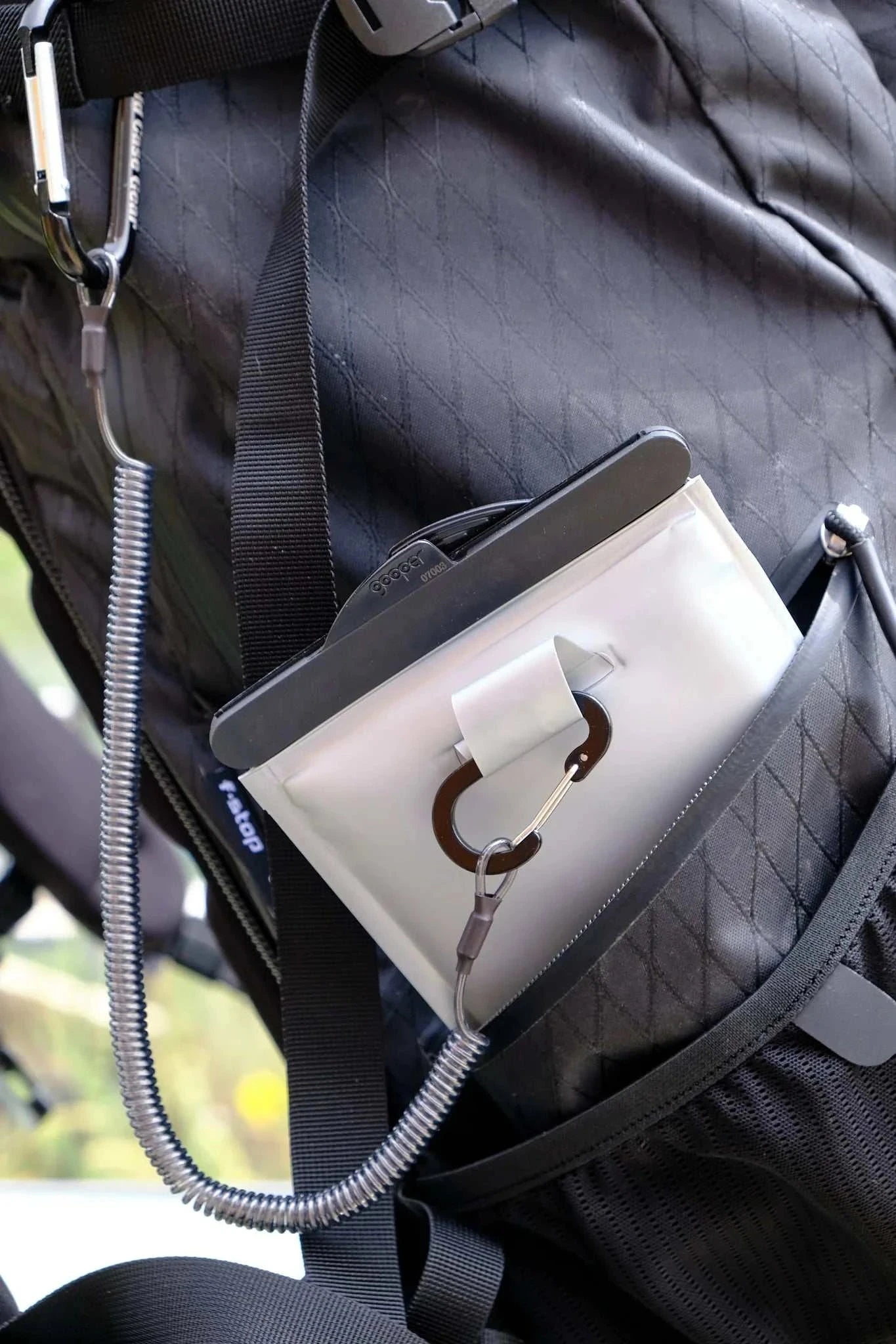 THE QUICKCLIP FEATURES TWO CARABINERS TO LEASH YOUR WEST SLOPE CASE TO JUST ABOUT ANYTHING.