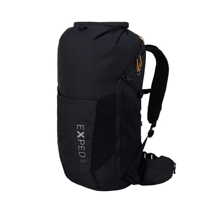 THE EXPED SKYLINE 45 IS A VERSATILE AND SPACIOUS COMPANION WITH A ROLL TOP CLOSURE AND LID POCKET. IT IS IDEAL FOR LONGER HIKES OR LONG DISTANCE TREKS.