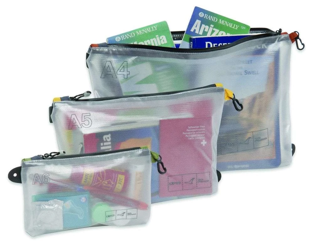 Exped’s all-purpose organisers feature zipper access and come in three practical sizes, from A6 to A4, perfect for holding everything from documents and maps to books, pens, and toiletries. Easily secure them with a clip-hook and durable Hypalon tab for added convenience and reliability.