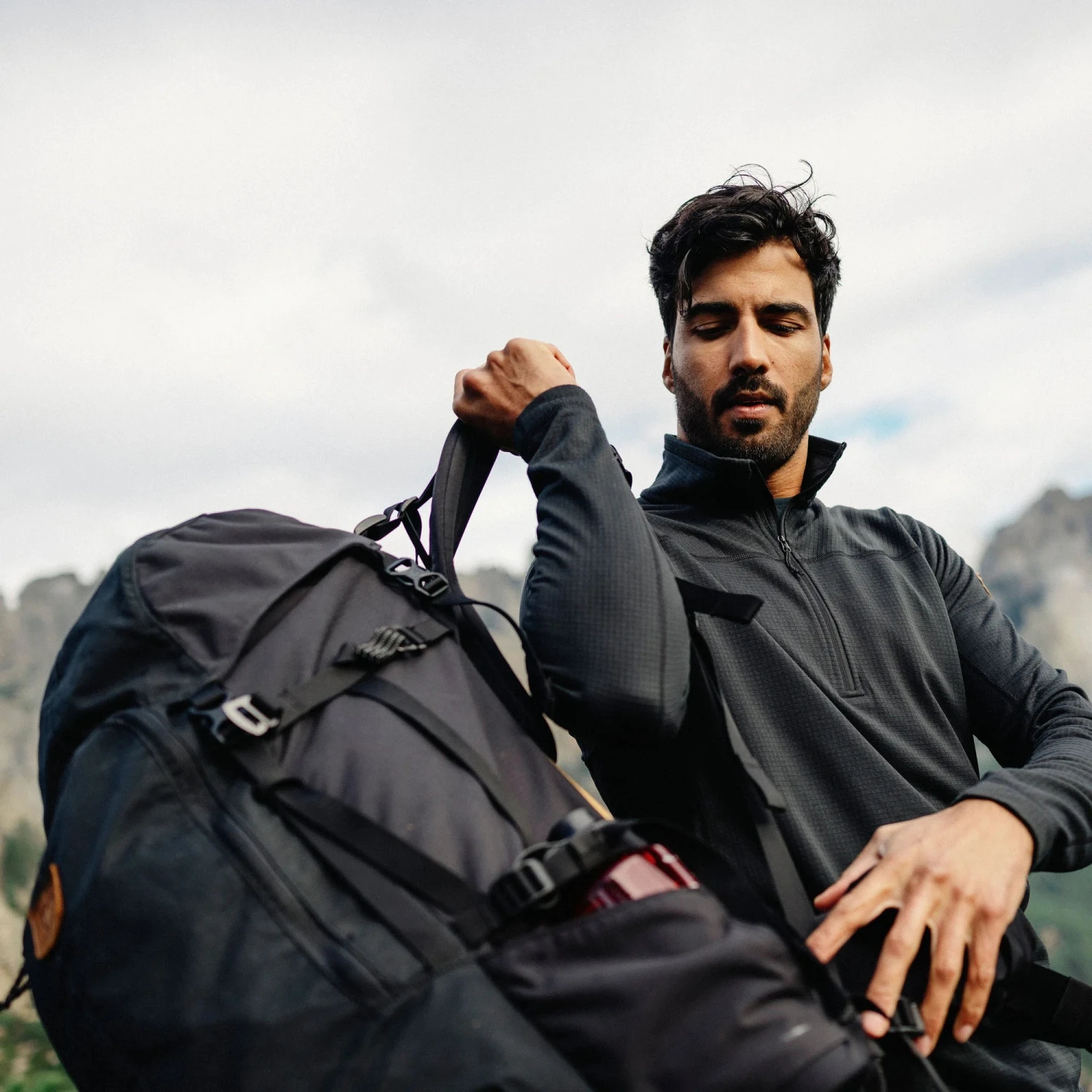 Light and comfortable fleece sweater with a half-length zipper – Abisko Lite Fleece Half Zip M is great to wear as a first or mid layer in warm climates. It is made from recycled polyester that transports moisture away from the body and dries fast. Regular fit with discreet thumbholes in the cuffs.