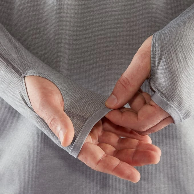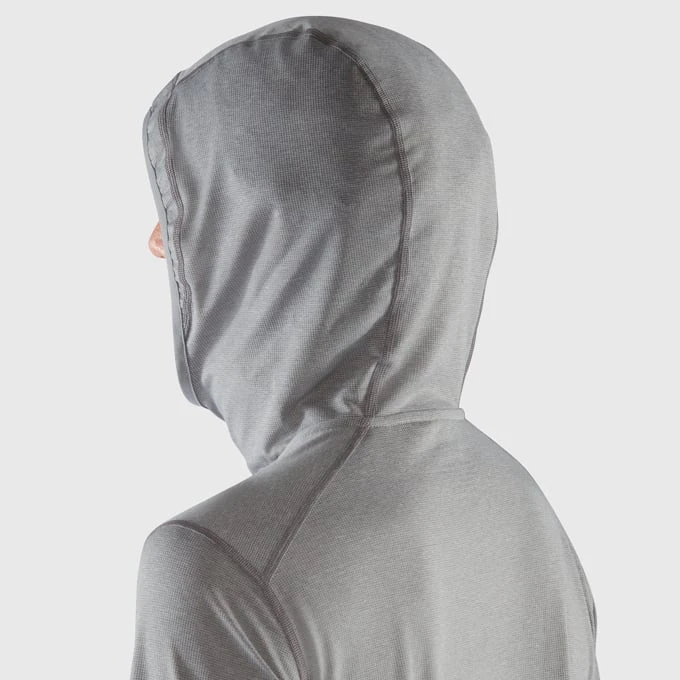 Light and comfortable sweater for outdoor life and travelling in warm climates. Made using a technical jersey knit that wicks away moisture and dries in no time for maximum comfort on sunny days on the hiking trail. Long sleeves and a hood offer light protection from the sun, and thumbholes stop the sleeves from riding up. Well-fitting but with a little extra room to let air circulate around the body. Gussets under the arms for extra freedom of movement. Produced without PFAS.