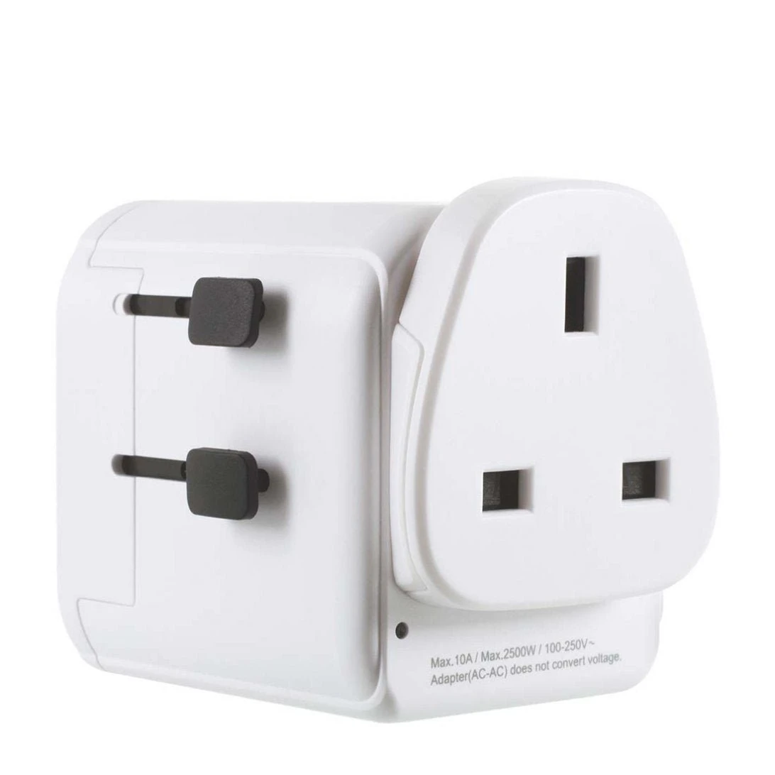 This USB UK World Travel Adapter is suitable for use with 3 pole earthed plugs to enable travellers to use their devices in over 200 countries worldwide and for multiple charging of devices.