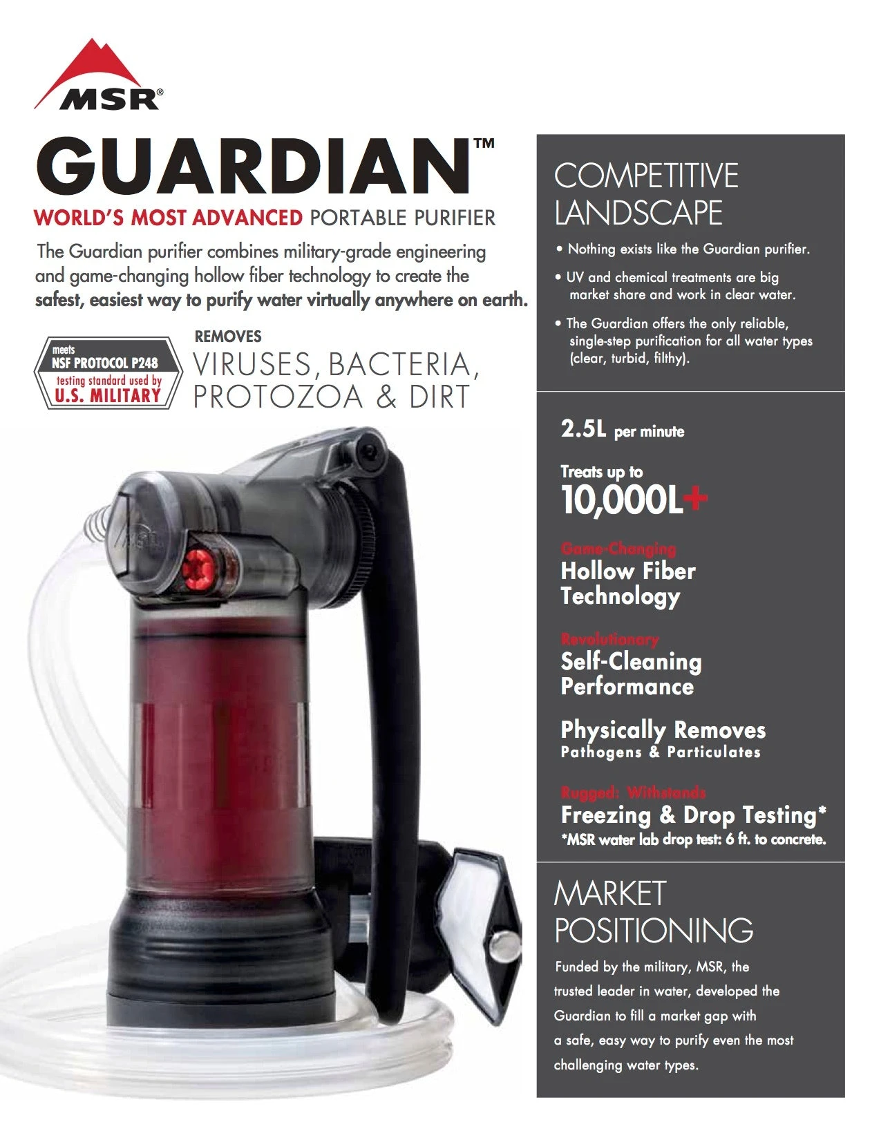 *Withstands MSR water lab drop testing: 6 ft. to concrete.