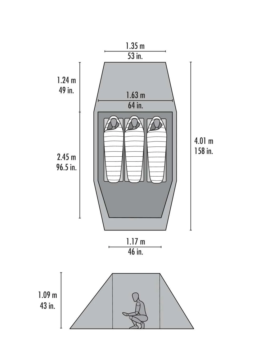 - Rainfly Fabric: 68D polyester 1500mm polyurethane & DWR