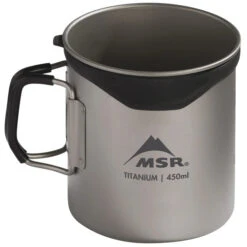 Don’t mistake the Titan Cup 450mL for just another coffee mug. This versatile ultralight cup pulls double duty as a petite cook pot. A removable silicone lip saver protects your mouth from hot titanium (just remove it before using the cup on a stove please). Interior graduation lines allow for fast and easy liquid measuring, and silicone-coated folding handles are comfortable to hold. Plus, the entire Titan cookware collection nests together with a stove so you can easily build your ideal cook setup.