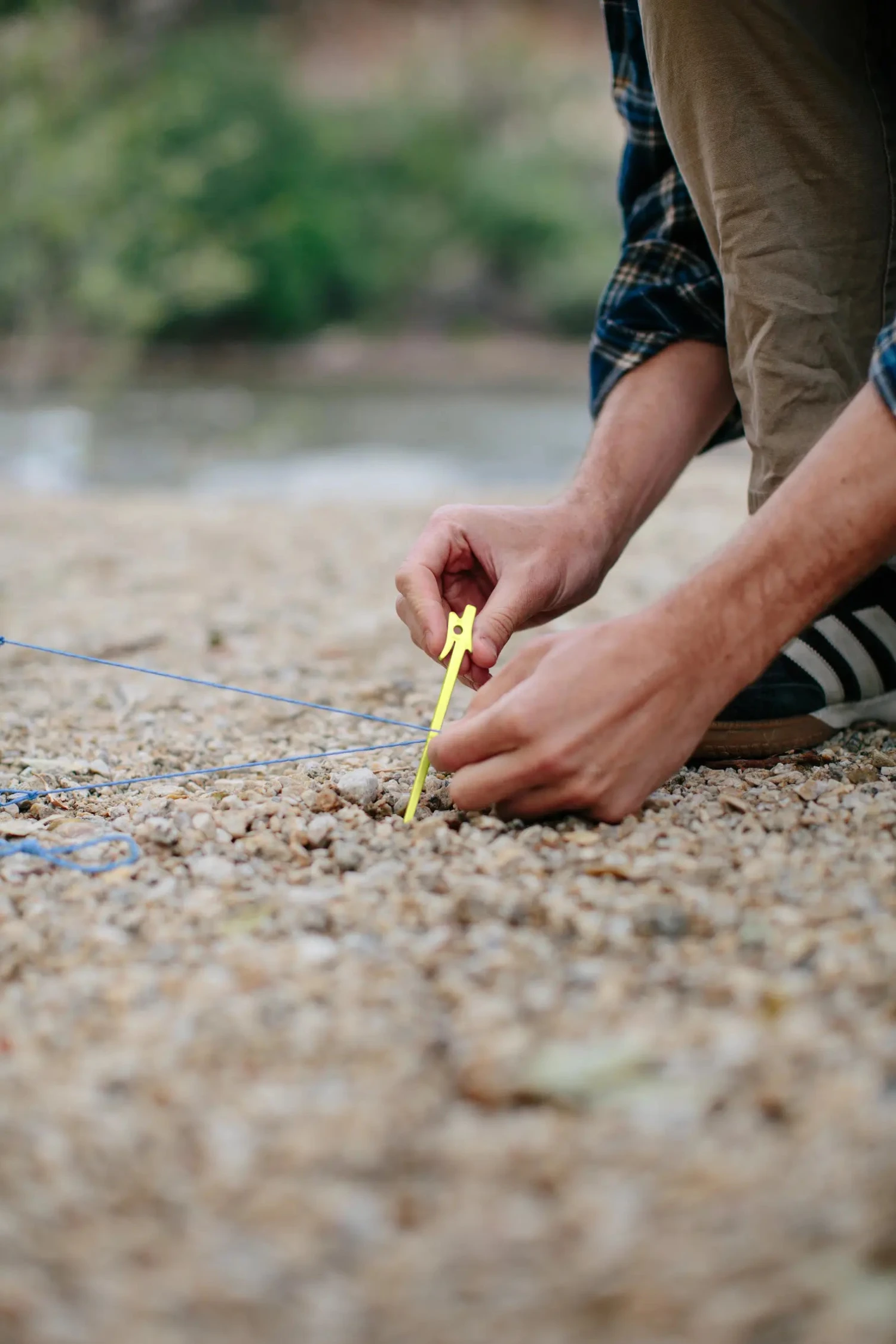 - Smart three-point locking system holds cord and eliminates the need for knots, cord locks, or guyline tensioners.