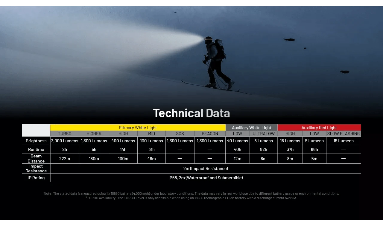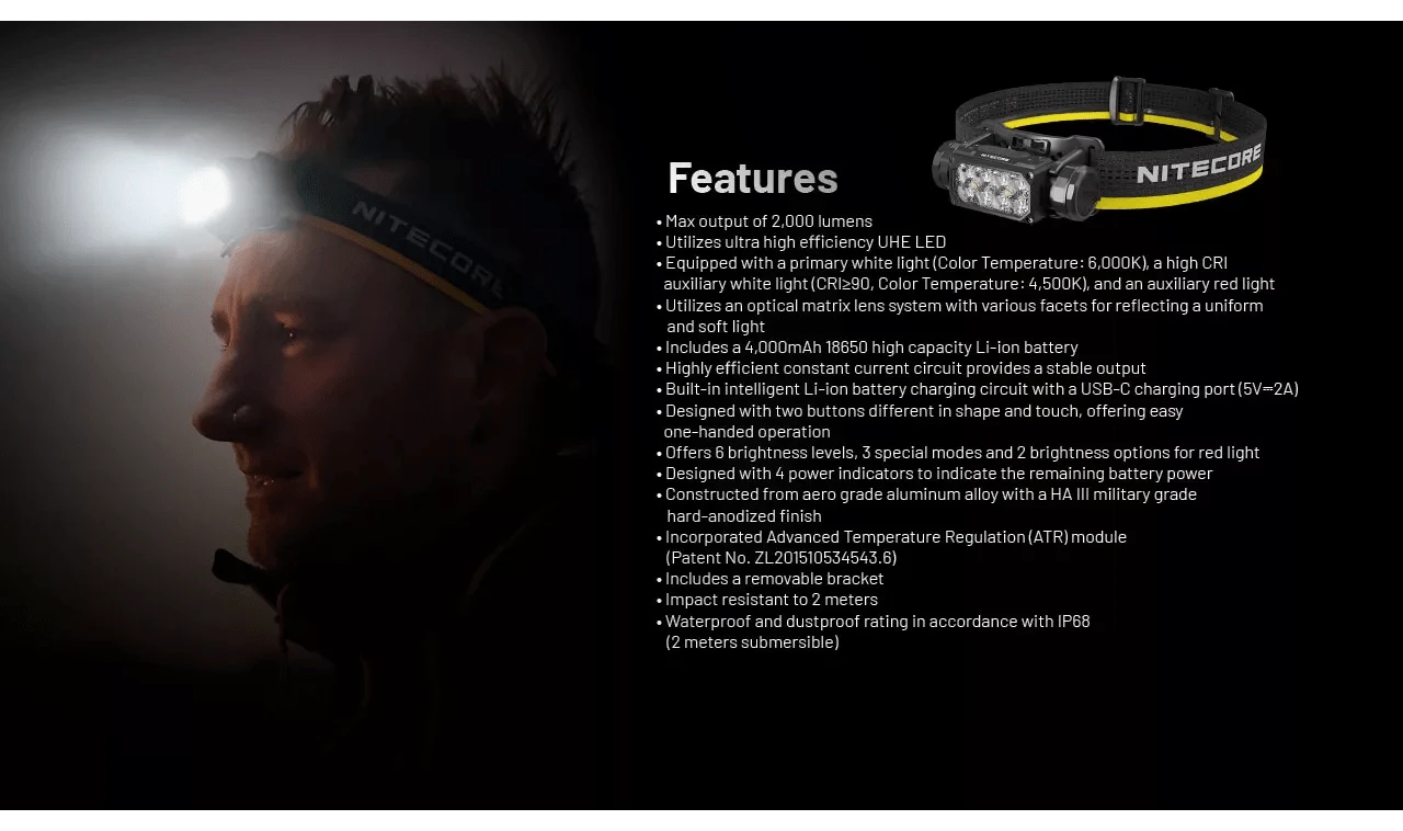 WITH A MAXIMUM OUTPUT OF 2000 LUMENS, THE NITECORE HC65 UHE HEAD TORCH IS THE LIGHT FOR YOUR NEXT GREAT ADVENTURE
