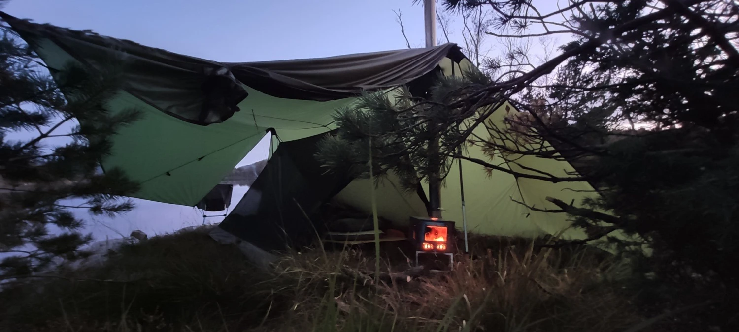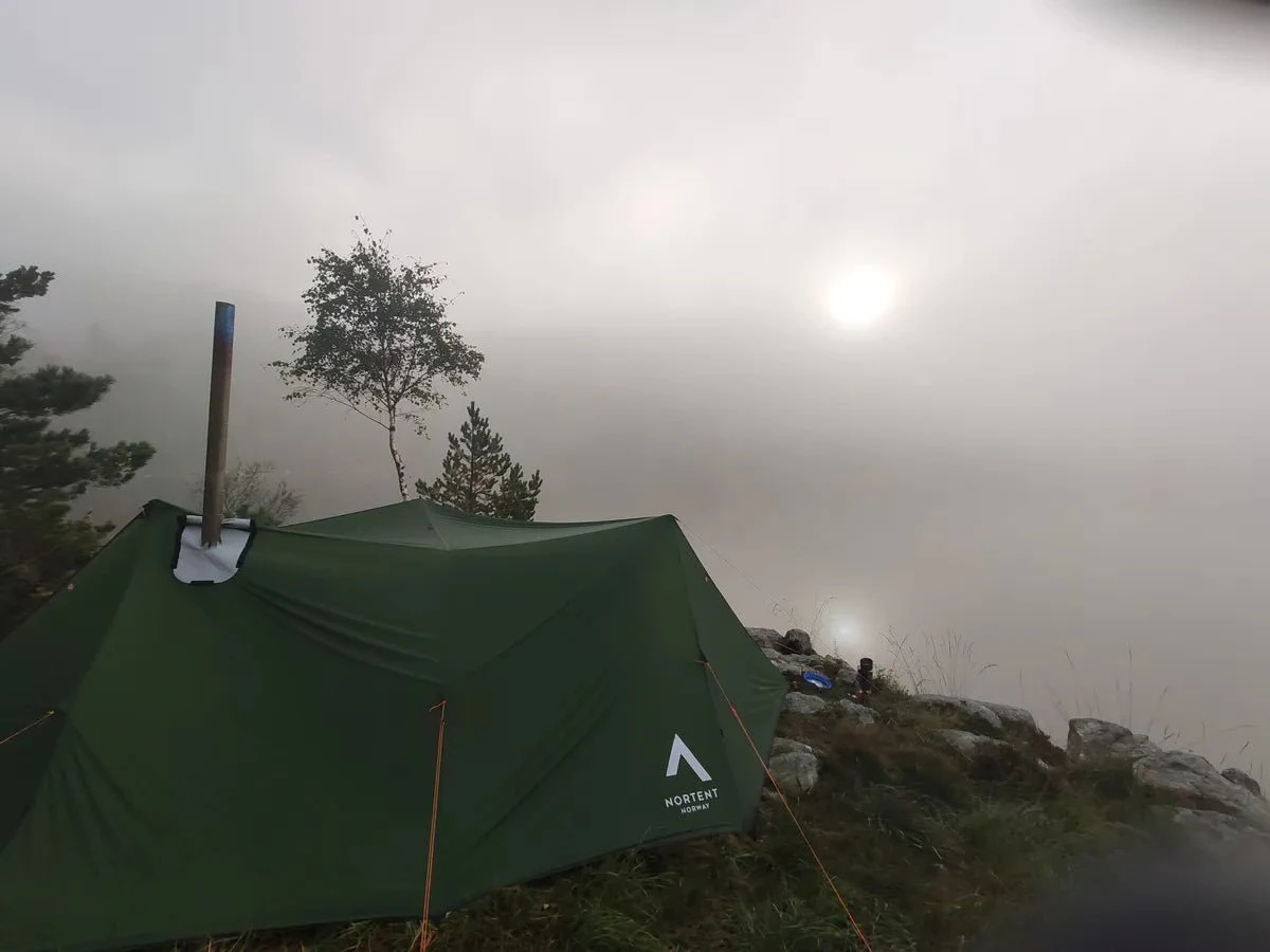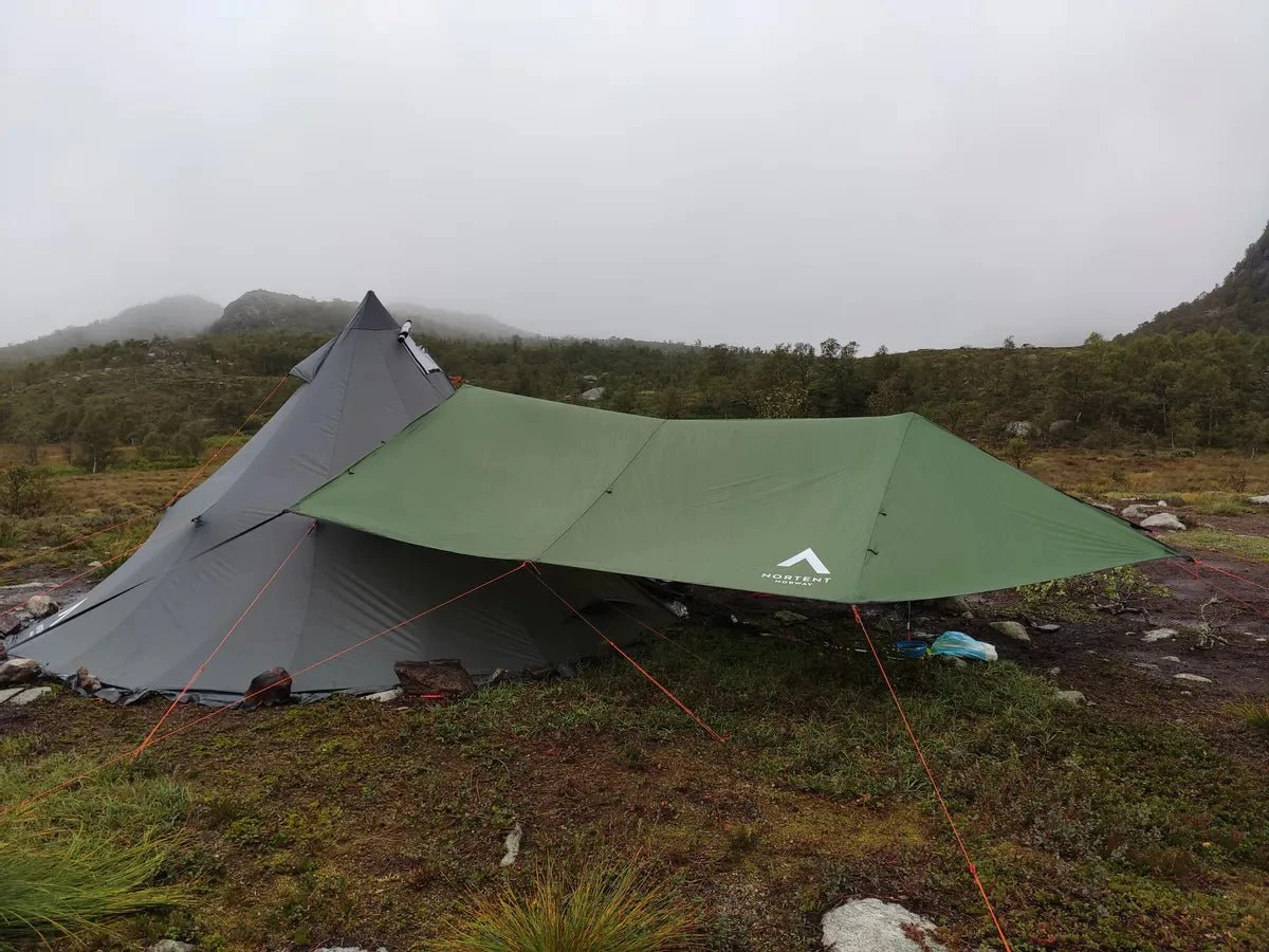 NORTENT Bivuakk is a 3 in 1 solution. A lightweight tarp that can be used in various configurations. As a tarp, shelter or a tent, weighing less than 1 kilo and taking up minimal space in the backpack. The fabric is also equipped with a stove-jack that can be used in all configurations.