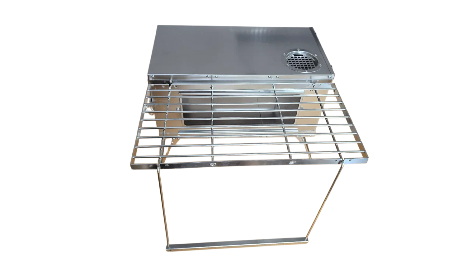 The two side shelves are included in the pack. These are easily hooked on each side of the stove and expand the cooking possibilities and the organisation of cooking. The side shelves also work well for secondary heating to keep food warm. The side shelves can also be used as a grill grate where the stove is turned into a super light grill that you can carry with you in most places. The air valve in the front of the stove creates an air intake in such a way that you can adjust the effect of the heat when you are grilling.