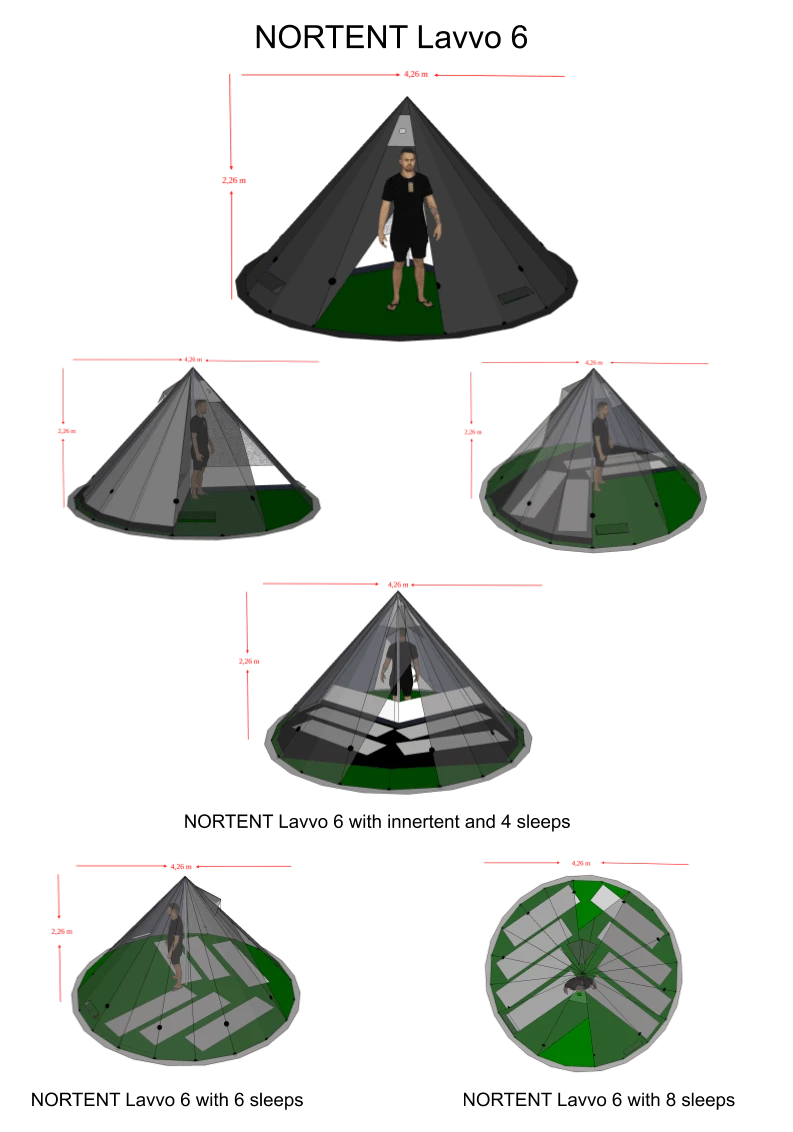 The Sami in Norway have through generations been in close contact with nature and has always sworn to the tipi for protection against the harsh weather. This is also our inspiration when designing our lavvo which is a Norwegian version of a tipi. NorTent lavvo 6 is a very flexible 4 season tipi. And is the result of a desire to develop a light tent that can be used in every situation.