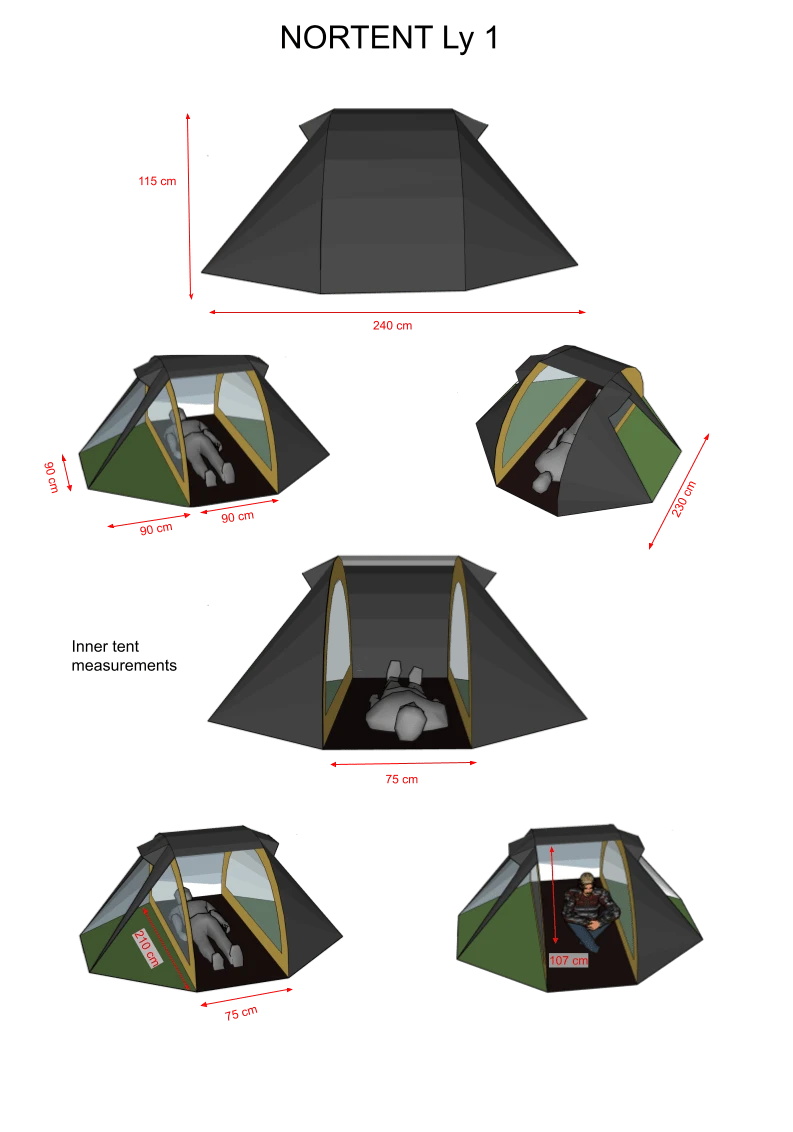 NORTENT Ly 1 is an extremely robust yet lightweight tent, offering ample space for one person, along with their equipment and cooking gear. This tent is perfect for longer hikes into the mountains and remote wilderness, providing reliable protection far away from houses and cabins. Its aerodynamic shape and versatile anchoring options make the Ly 1 a dependable companion in various weather conditions. Our philosophy is that you should not struggle against the elements but rather harmonise with them and thrive.