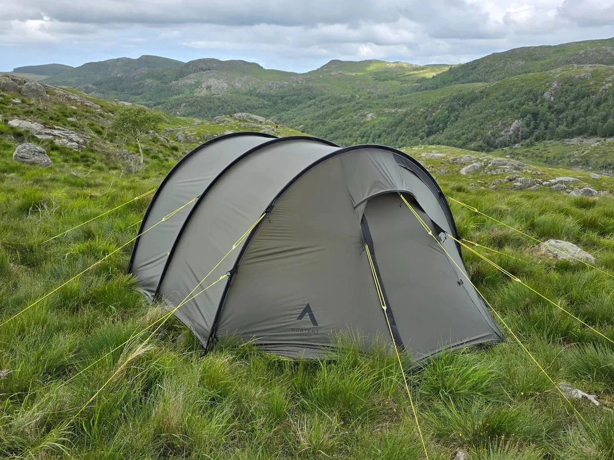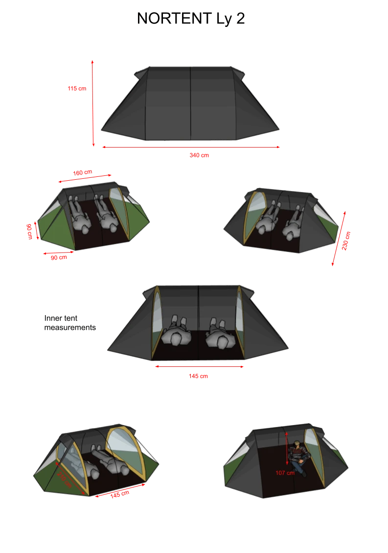The NORTENT Ly 2 is an extremely robust tent with plenty of room for 2 people along with equipment and cooking. Very suitable for longer hikes into the wilderness far away from houses and cabins where you really need reliable protection against the elements. With its aerodynamic shape and many possibilities for anchoring the tent to the ground, this tent is a true friend that will keep you safe in various weather conditions. Nortent believe you should not have to fight the elements but rather become one with and thrive in them.