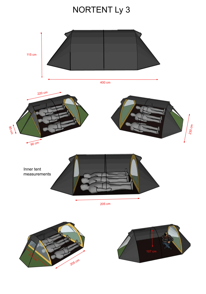 The NORTENT Ly 3 is an ideal companion for extended hikes in remote wilderness areas, far from the nearest house or cabin. Designed for robust performance, it offers ample space for three people, their gear, and cooking essentials. Its aerodynamic design and multiple anchoring options ensure stability and reliability in various weather conditions, providing dependable protection against the elements. This tent enables you to not just endure but thrive in nature, making it perfect for adventurers seeking to immerse themselves fully in the outdoor experience.