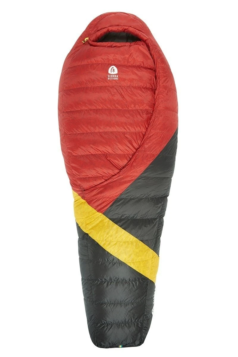 The Sierra Designs Cloud 800 Zipperless Sleeping Bag is rated at -7C. The Cloud 800 comes in Regular and Long Sizes. The Cloud 800 features a sleeve to keep your mat secure.