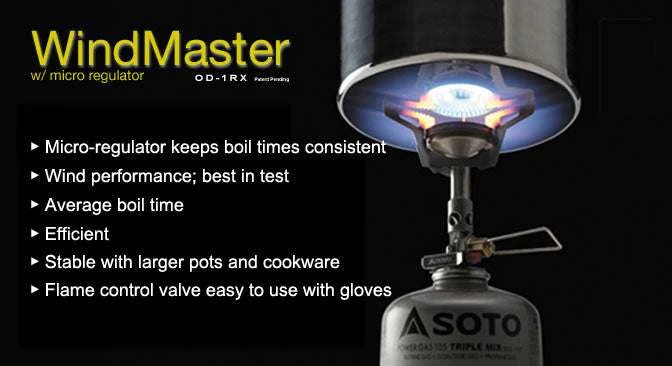 The SOTO WindMaster stove is designed so the pot sits close to the flame, making it more efficient in windy weather. Results in increased efficiency so boil time is quicker and longer. The concave design of the burner head creates the effect of a built-in windscreen. The 4Flex pot support works for a larger pot, but the smaller, Triflex pot support, is available separately. An efficient stove for whatever size pot your adventure requires.
