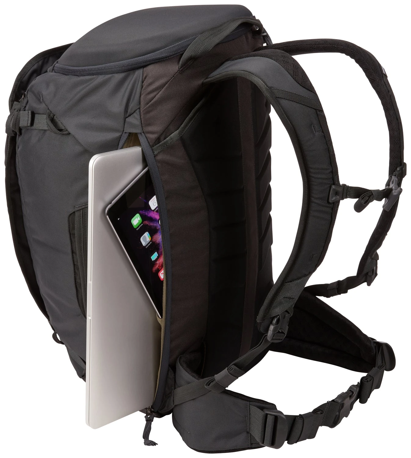 Your 15″ MacBook® and 12.9″ tablet stay safe in the dedicated storage compartment, while internal compression straps and mesh pockets help keep your belongings organised and secure. A zippered side pocket provides a convenient place to store a water bottle or small items, and external lash points make it easy to attach a carabiner or other accessories. Designed as a carry-on compliant pack for most airlines (always check with your airline), the Thule Landmark also includes a built-in sternum strap whistle for added peace of mind during your travels.
