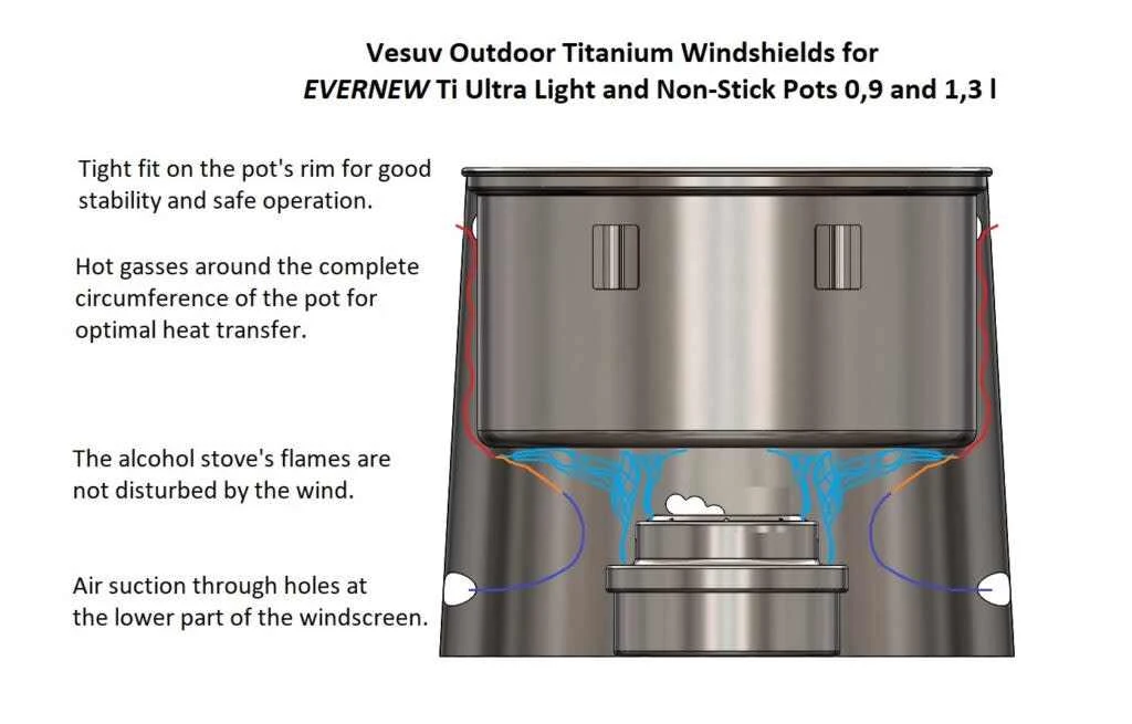 TITANIUM WINDSHIELDS FOR EVERNEW POTS PROVIDE MORE EFFICIENCY, STABILITY AND COMFORT WHILE COOKING OUTDOORS