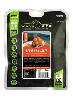 A classic and comforting meal that’s perfect for breakfast or a warming bite at the end of a long day outdoors. Wayfayrer Beans and Sausages features tasty pork sausages in a rich tomato and baked bean sauce. Fully cooked and ready to eat hot or cold, it’s an easy and satisfying option for campers, hikers or emergency food kits.