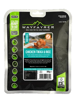 Enjoy a taste of India wherever your adventure takes you. Wayfayrer Chicken Tikka and Rice offers a rich and mildly spiced curry made with tender chicken pieces in a creamy tikka sauce, served with cooked rice. It’s a convenient and satisfying hot meal, pre-cooked and ready to eat straight from the pouch — ideal for camping, hiking, or emergency supplies.